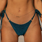 The Mira Bottoms are minimal thong style back featuring gold beading at the end of the ties, gold ring details and a gold metal logo for a subtle sexy and classy touch. These bottoms are fully-lined and made from a super soft semi-shine fabric that looks amazing in the sun. These bottoms are a must-have to be added to every bikini lovers collection looking for minimal tan lines.