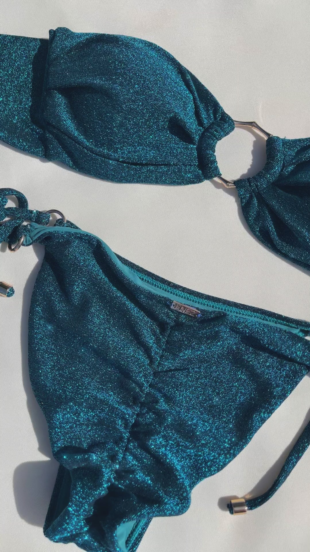 The Vivian bottoms are gorgeous medium coverage scrunch bikini bottoms featuring gold ring details at the sides. These triple layered bottoms are made from super-soft semi-shine fabric with gold beading at the end of ties and a metal gold logo on the back for a subtle sexy and classy touch. These bottoms are a must-have to be added to every bikini lovers collection.