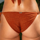 The Vivian bottoms are gorgeous medium coverage scrunch bikini bottoms featuring gold ring details at the sides. These triple layered bottoms are made from super-soft semi-shine fabric with gold beading at the end of ties and a metal gold logo on the back for a subtle sexy and classy touch. These bottoms are a must-have to be added to every bikini lovers collection.