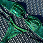 Model is 5’8”, 32D and is wearing a size small in top and bottoms