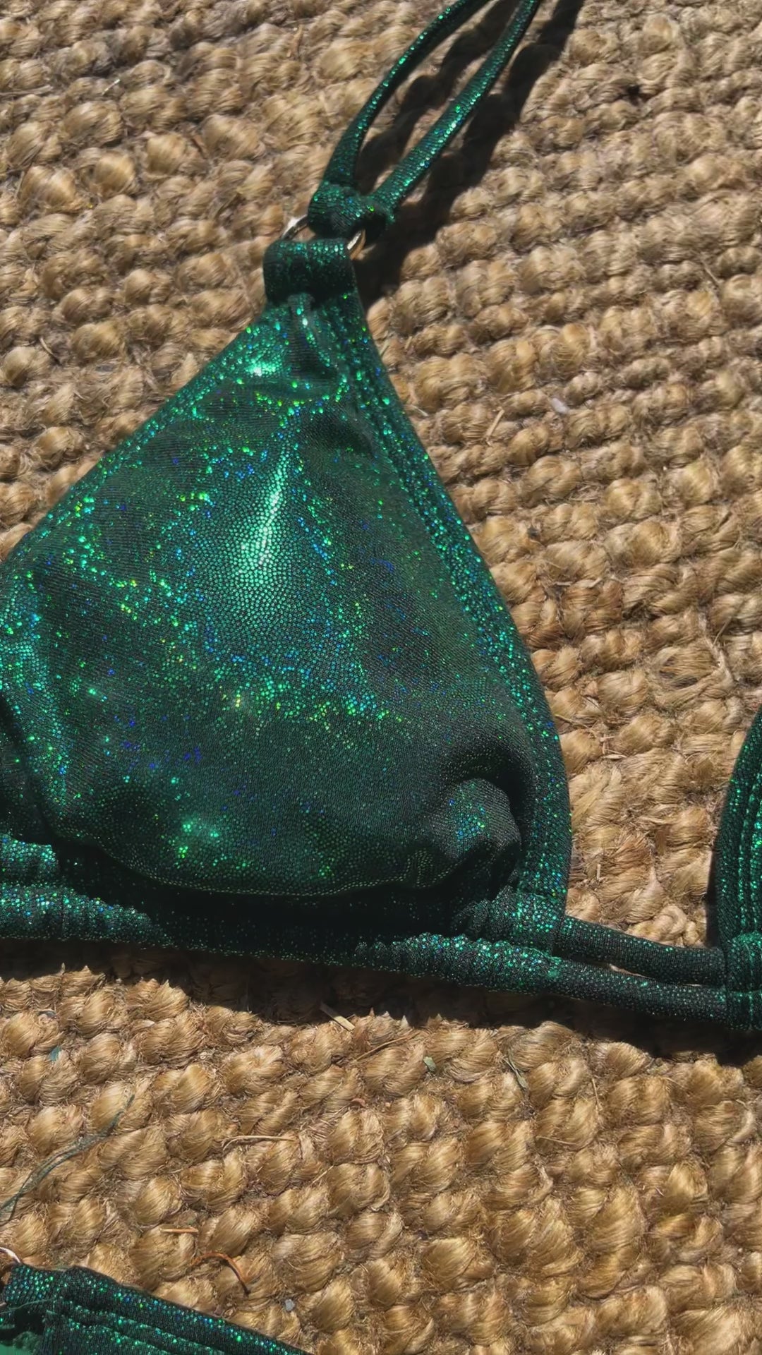 The Eden top is an adjustable ultra-supportive triangle top that's meant to lift and accentuate with its double straps. This top is made from sleek, soft glittery material that's comfy enough to wear all day long. Top comes with removable padding.