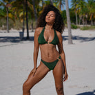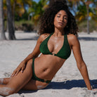 The Isla top is an adjustable ultra-supportive elongated triangle style top that's meant to lift and cover in the right places ensuring the perfect fit. This top is made from sleek, soft glittery material that's comfy enough to wear all day long. This top comes with a beautiful water-proof gold metal charm in the center of the cups and comes with removable padding.