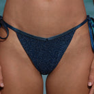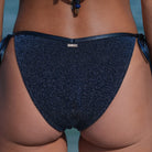 The Nyah bottoms are meant to turn heads. Its gorgeous sparkly material is outlined in a smooth sleek metallic fabric for the perfect eye-catching set. Bottoms come with matching colored beads and gold details on the ties. Bottoms are double-lined.