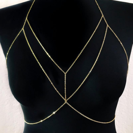 Take your swimsuit look to another level. This gorgeous best-selling bralette body chain is the perfect shiny accessory to pair with your bikini, one-piece or everyday outfit.