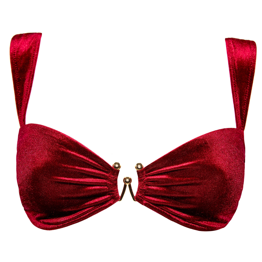The Esmina top is an adjustable ultra-supportive underwire top that's meant to lift and accentuate in the right places ensuring the perfect fit. This top is made from sleek, soft glittery material that's comfy enough to wear all day long. This top comes with a beautiful water-proof gold metal charm in the center of the top and comes with removable padding.