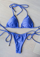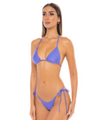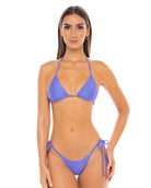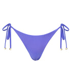 Adjustable thong bikini bottom with gold beading at end of ties. Bottoms are made from sleek soft shiny material- comfy enough to wear all day long. Back is sliding and adjustable to minimize tan lines and accentuate your curves.