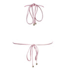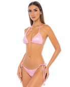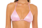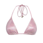 This stunning pink glitter bikini top features an adjustable triangle design with elegant gold beading at the ends of the ties. Made from a sleek, fully-lined, glittery material with a soft-to-the-touch holographic shine, the fabric is smooth and never scratchy. Designed for all-day comfort, it also comes with removable padding for customizable support. This eye-catching pink glitter bikini is perfect for those looking to turn heads at the beach or pool, combining both style and comfort in one must-have swimwear piece!
